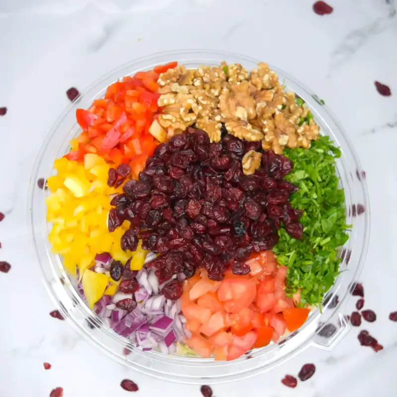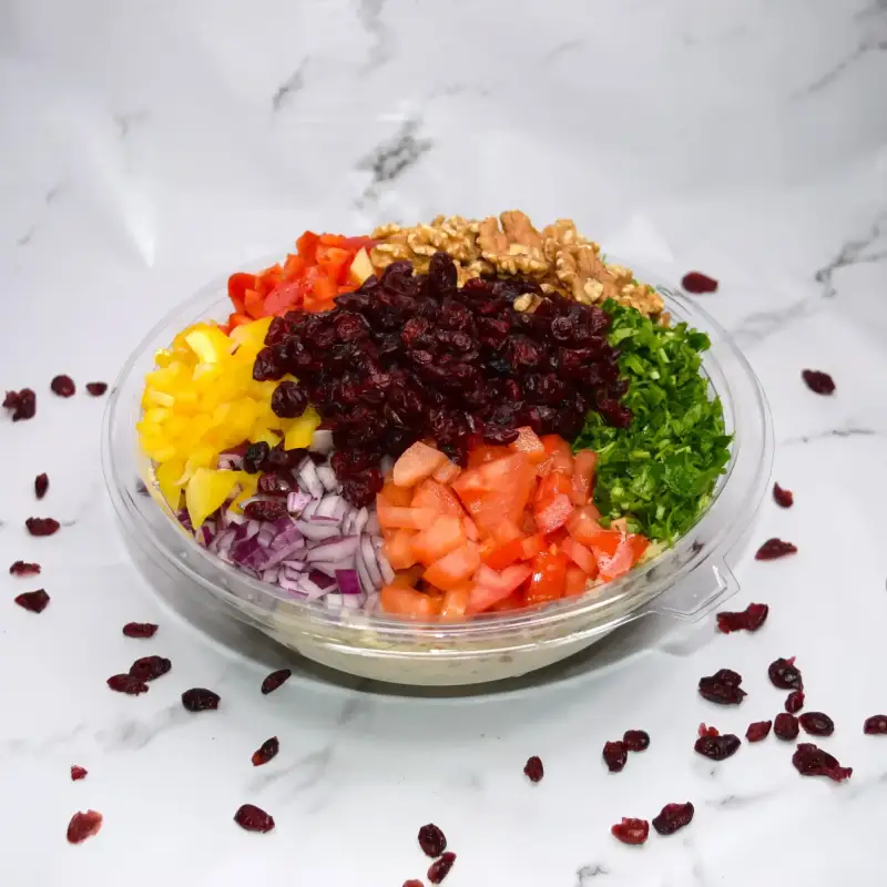 בורגול דק, חמוציות, פטרוזליה, סלרי ,בצל סגול ועגבניה