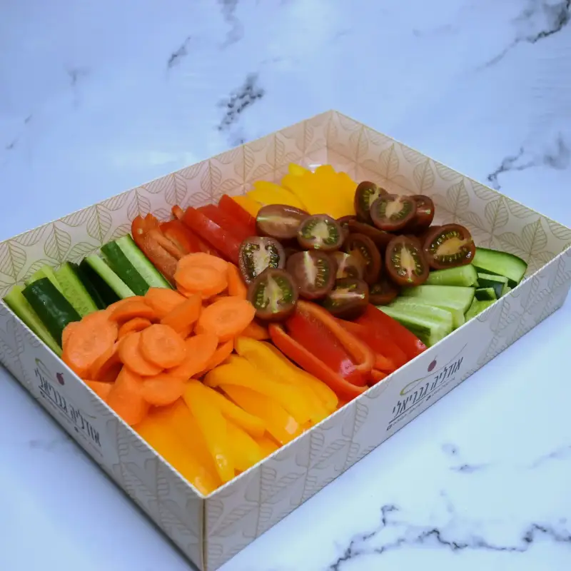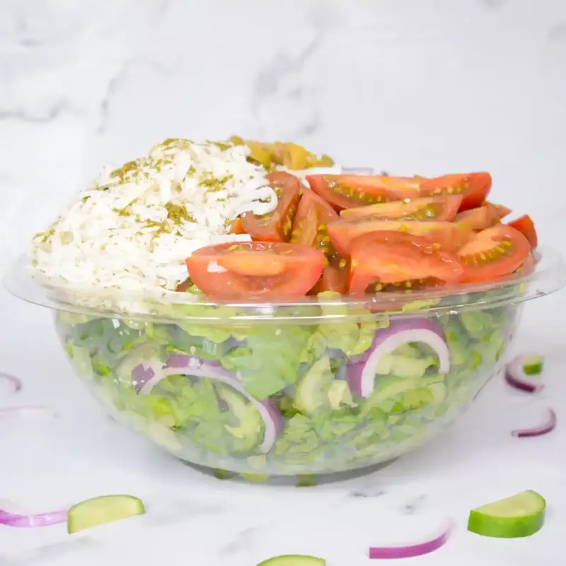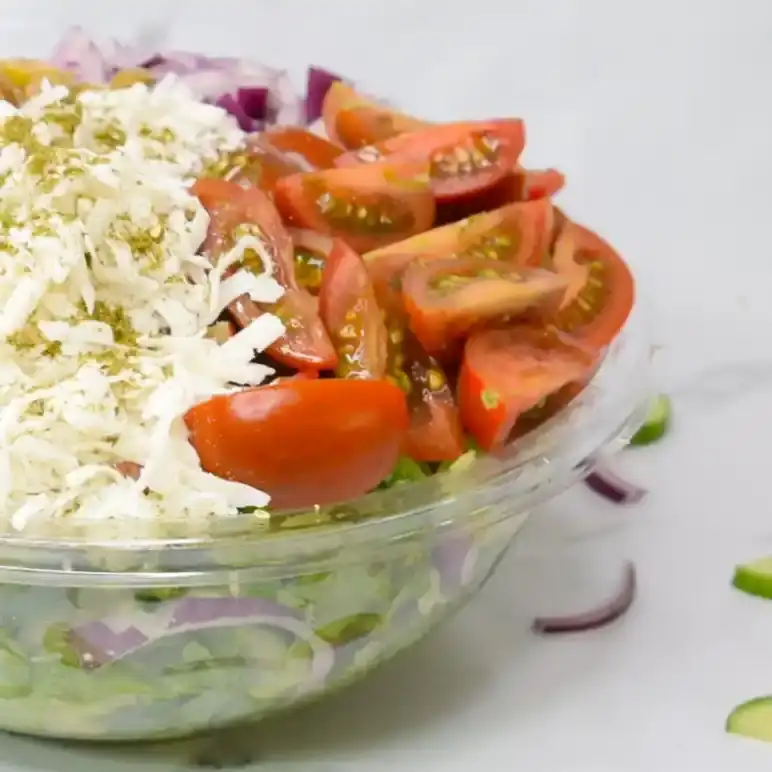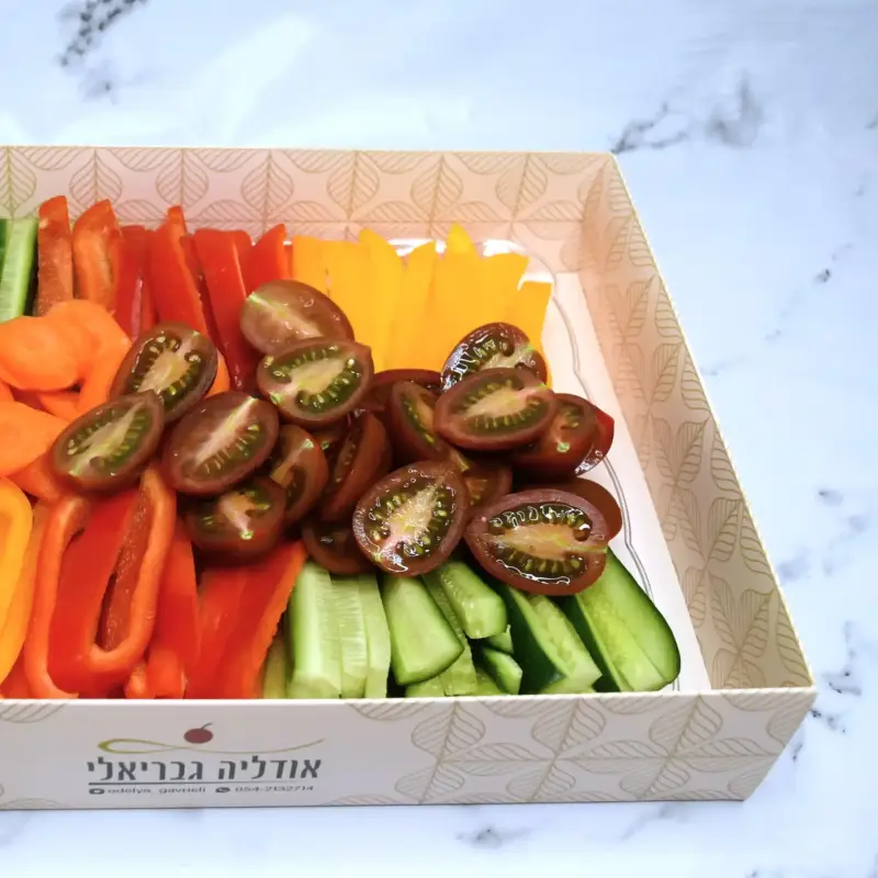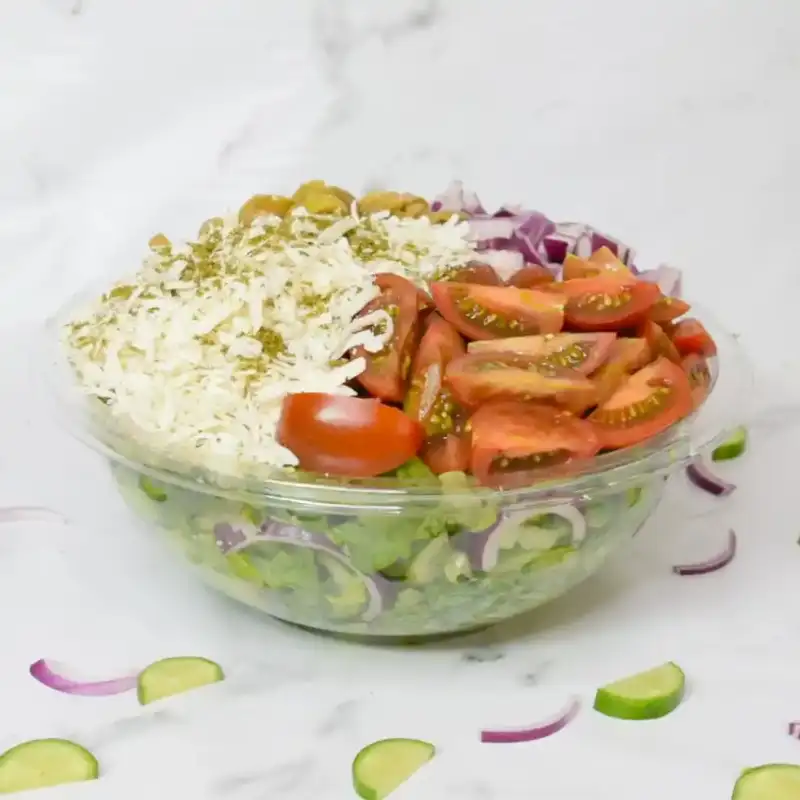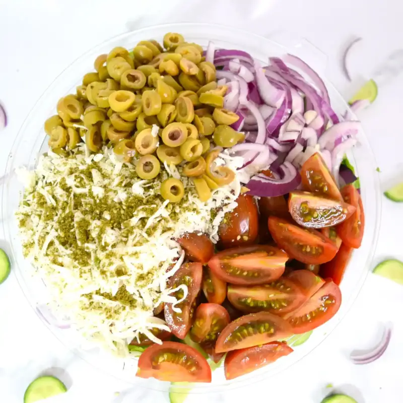 מלפפון,עגבניות שרי,חסה לליק,בצל סגול,זיתים ,ובולגרית קוביות (ארוזה בנפרד)